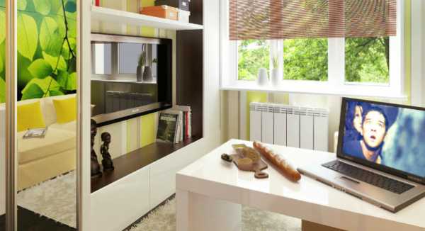 Наличие балкона или лоджии важное достоинство студии. Данную площадь можно использовать для обустройства рабочего места. Предварительно проводится ее утепление.