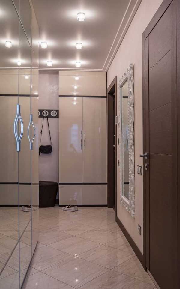 Теплая функциональная прихожая с обилием света и крупным зеркалом.
