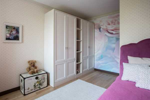 В интерьере комнаты для девочки предусмотрены удобные шкафы для обуви, одежды, а также книг, стеллажи для компакт-дисков, тетрадей, журналов. Комната функционально разделена на зоны для полноценного отдыха, занятий, приема друзей. Композиционным центром комнаты является оригинальный круглый диван.
