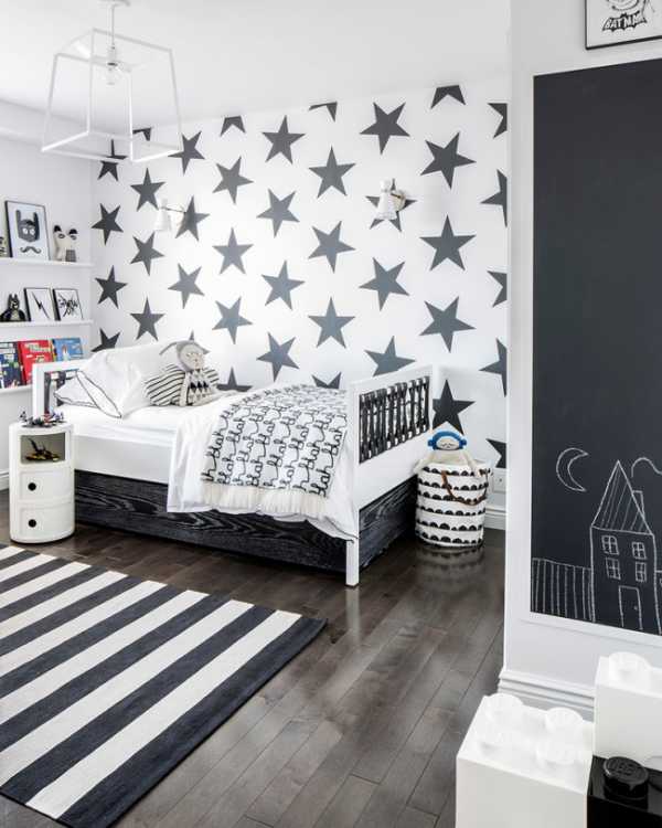 Детская комната, оформленная в черно-белом цвете — очень смелое решение