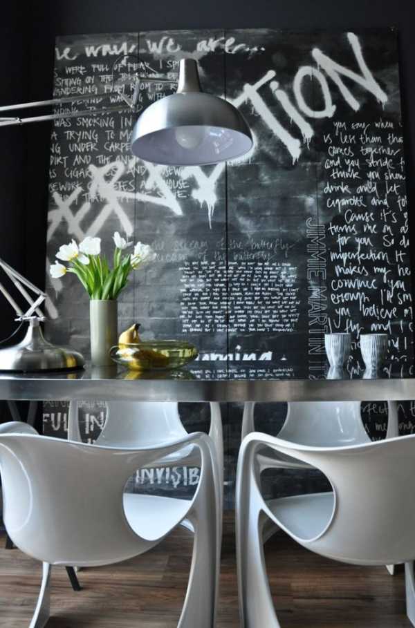 Черно-белая графика на стене имеет много общего с татуировкой на теле: желание отойти от консервативных устоев путем самовыражения. Бунтарский дух владельца графики сразу ощущается благодаря смелому решению нанести подобное изображение вместо обычной картины. С той лишь разницей, что перекрасить стену гораздо проще, чем избавиться от разонравившейся татуировки. А значит, эксперимент заслуживает внимания, и бояться чуть выйти за рамки традиционной отделки не стоит.