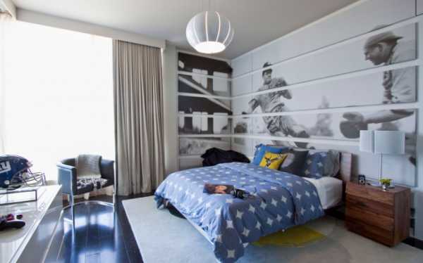 Просторная комната для подростка с большим графическим рисунком на всю стену