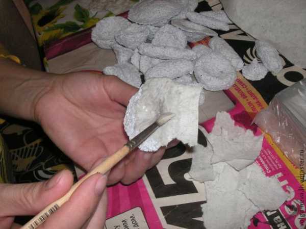 Использовала массу , приготовленную из яичных лотков – вот здесь подробно рассказано, как это сделать. У меня на все эти грибочки ушла всего лишь одна упаковка от трех десятков яиц.