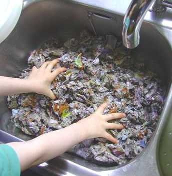 Через сутки содержимое ведра переносится в таз или мойку,отверстие которой необходимо предварительно закрыть, и начинается перетирка будущего папье-маше. Мять всю эту массу следует до появления более или менее однородного серого цвета.