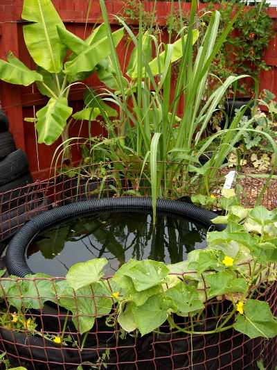 Из покрышек легко соорудить подземную емкость для стоков из кухонной раковины, используемую вместо обычного ведра. А это значит, дачная кухня навсегда избавится от грязных луж на полу. Емкость закапывают в 3-4 метрах от дома, стоки выводятся в нее через трубу (лучше использовать полиэтиленовую), уложенную с уклоном не менее 10 см на 1 м. На раковине перед трубой устанавливают сифон, чтобы запахи не просачивались в кухню. Сверху емкость закрывают железным листом, фанерой или оргалитом и затем засыпают слоем земли (40-50 см). Это позволит использовать грунт над ямой для посадок.