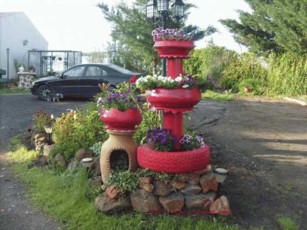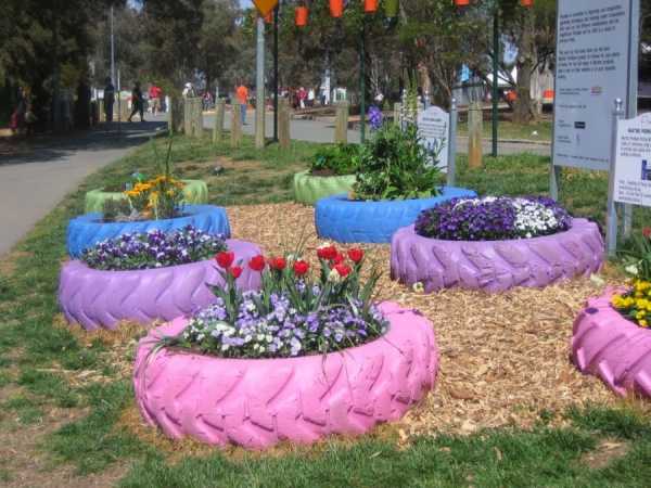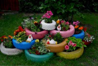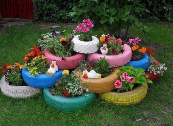 Функциональные украшения. В качестве озеленения участка используются различные цветники и клумбы, которые можно соорудить из автомобильных покрышек различного диаметра.