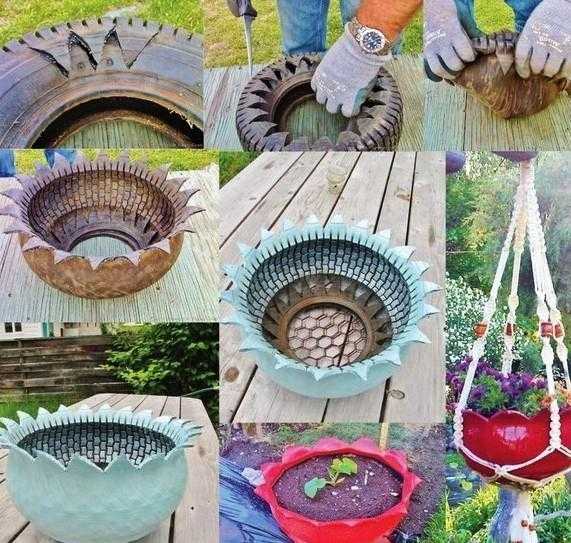 Ознакомившись с представленными фото поделок из шин, можно подобрать несколько интересных и уникальных украшений, которые эффективно сочетают в себе привлекательность и функциональность: