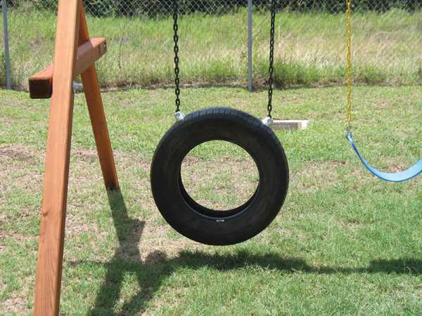 Разрезав шину пополам и прибив к отрезанной части ровную дощечку можно в итоге получить отличную уличную качалку для ребенка. А ведь ее к тому же можно покрасить в любимый оттенок ребенка, и тогда он будет на ней проводить массу времени.