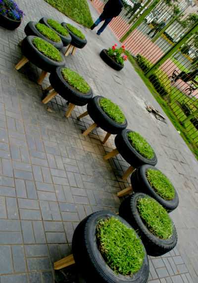 Практичный и надежный материал, из которого изготовлены автомобильные покрышки обладает рядом эксплуатационных преимуществ, они определяют популярность повторного применения шин для украшения придомовой территории.