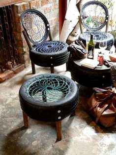 Предметы мебели из старых автопокрышек. Согласитесь, что необычная мебельная атрибутика всегда смотрится необычно и даже стильно. Самым простым предметом мебели является пуфик из автомобильной резины.
