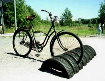 Разрезанные пополам шины, вкопанные в ряд на расстоянии примерно 8 см. друг от друга, послужат отличной стойкой для велосипедов.