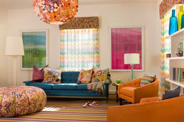 Одним из главных правил оформления небольшой комнаты являются светлые цвета для стен. Это не значит, что все стены должны быть окрашены в белый цвет. Яркие оттенки создают хорошее настроение и красивые цветовые акценты. Для создания особой атмосферы в комнате важно придерживаться определенной цветовой схемы. Выбирайте похожие между собой оттенки, к примеру, желтый и оранжевый, синий и голубой, розовый и фиолетовый. Визуально расширить пространство помогут тонкие вертикальные полосы, размещенные на стене.