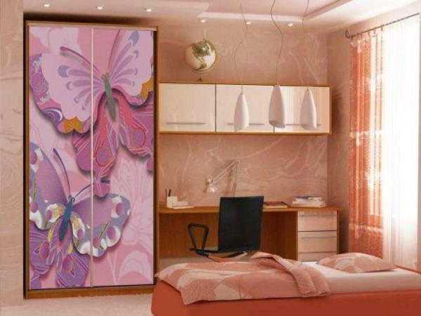 - Шкаф. Место хранения вещей должно быть вместительным и хорошо вписываться в интерьер. Маленькая комната для подростка так и просит вариант «купе».