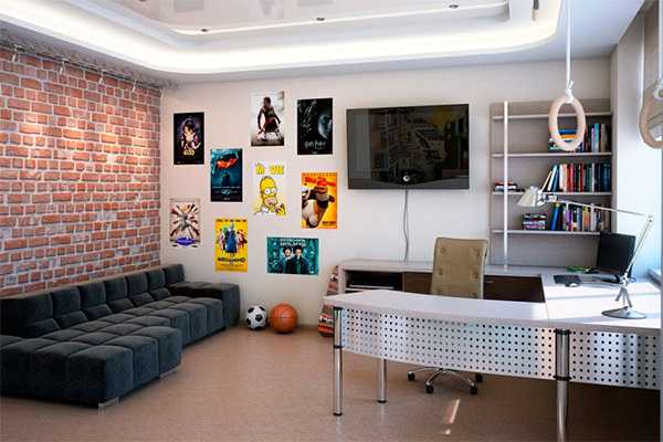 Совет! Установите осветительные приборы в комнатах, сделанных для мальчиков, так, чтобы свет был рассеянным. Яркий свет, который отражается от мебели, заставляет блестеть обои и шторы, вреден для зрения мальчиков 14-16 лет.