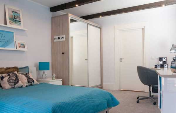 Шкаф-купе до потолка позволит разместить все необходимое для двух подростков, при этом в комнате сохранится хотя бы относительный порядок. Дизайнеры рекомендуют обратить внимание на возможность использования двухъярусной кровати, которая и значительно экономит место, и позволяет оборудовать изолированную зону для сна каждому ребенку.