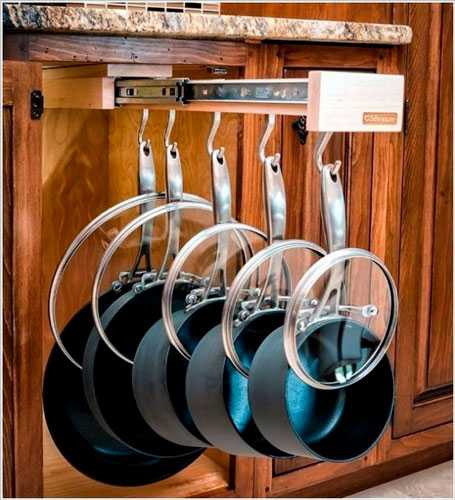 Вам нужно место для хранения крышек? Это умное приспособление подарит вам порядок и удобство в этом деле. Также у вас появится возможность эффективного использования боковины шкафчика.