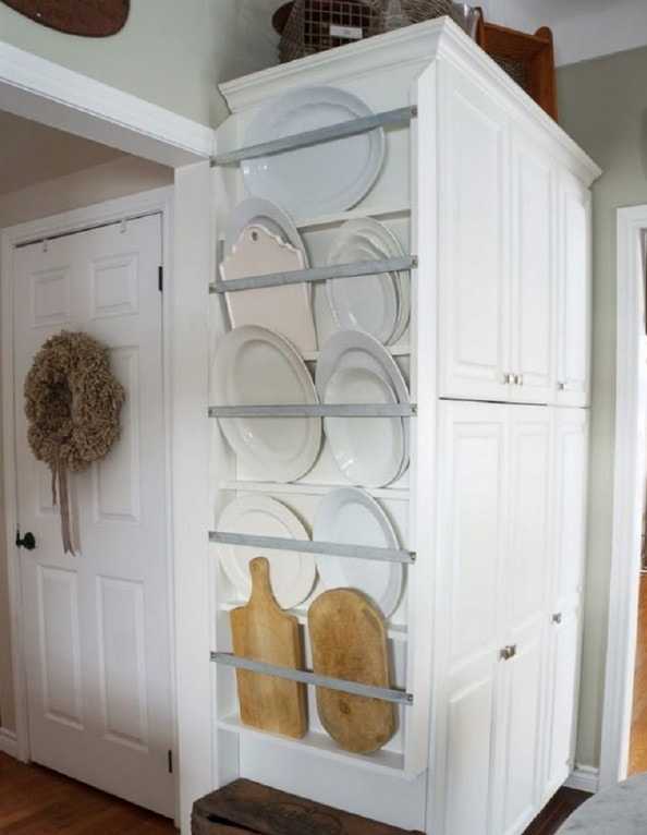 4. Стеллаж для хранения больших тарелок и разделочных досок.