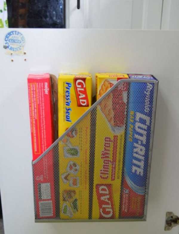 Используйте пластиковые подставки для бумаг, они помогут навести порядок на кухне.