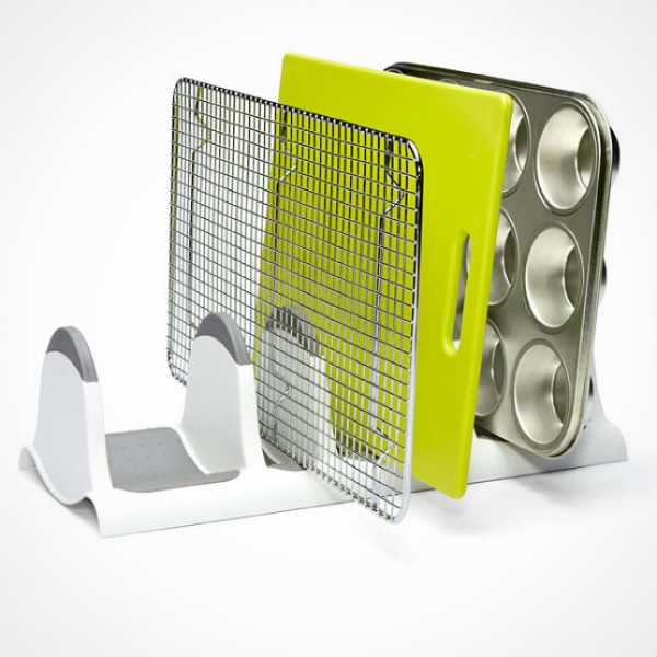 Эти приспособления помогут вам просто и удобно хранить листы для выпечки и лотки в вертикальном положении, а не горизонтальными стопками.
