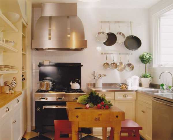 Сковороды, дуршлаги, кастрюли начищенные до блеска будут служить отличным декором на кухне.