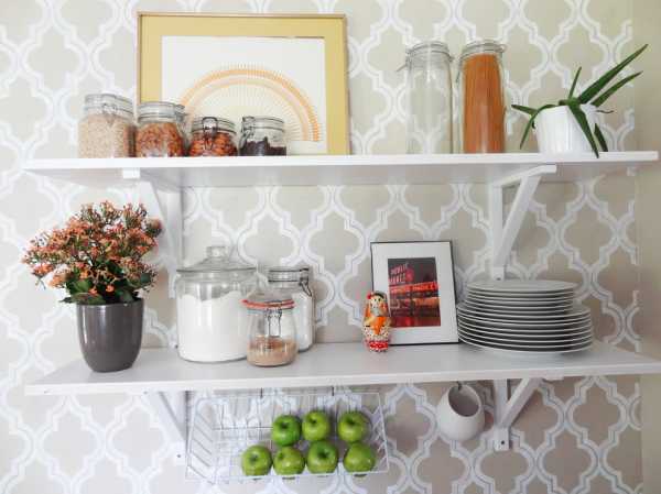 Рассмотрите вариант замены верхних шкафов на открытые полки. После проведения очистки поверхностей и ухода за мебелью вы сможете заметить, что у вас появилось свободное место. А это значит, что открытые полки и стеллажи прекрасно заменят некоторые шкафы.