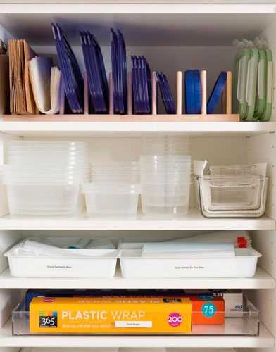 Для быстрого поиска нужной крышки к пластиковому контейнеру также используйте вертикальные разделители.
