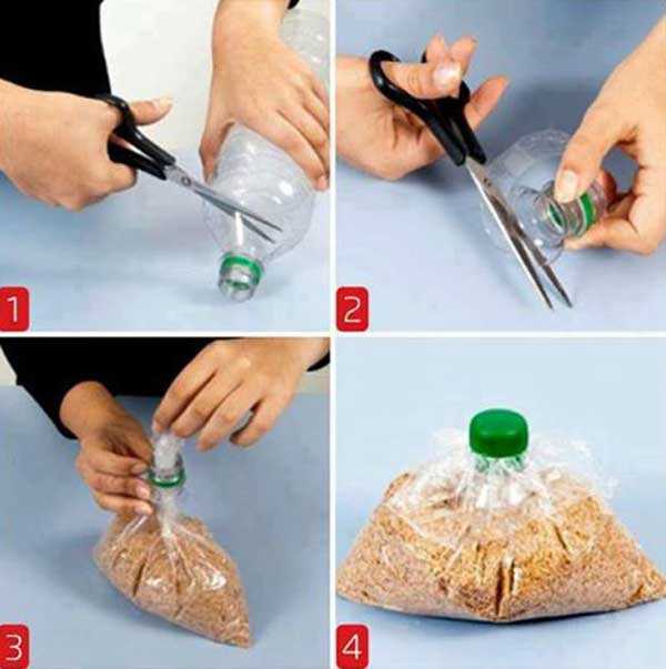 18. Пакеты с крупой легко закрыть с помощью верхней части бутылки