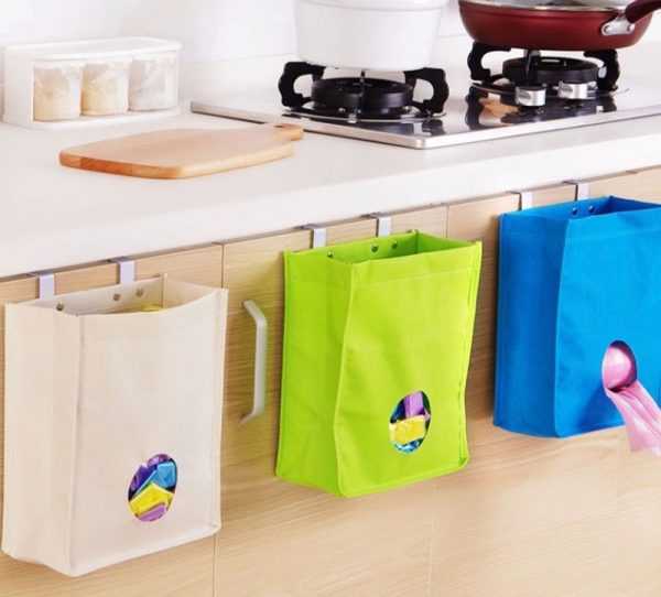 В кухнях небольших размеров обычно бывает сложно найти место для мелочей, особенно если кухонные шкафчики заняты важными предметами. В этом случае для хранения мешков можно приобрести специальные контейнеры или сделать их своими руками.