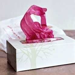- Целлофановые мешочки можно компактно хранить в картонной коробке или пластиковой банке из-под влажных салфеток. В них уже есть готовые прорези, через которые пакеты вытаскивают наружу. Также можно использовать коробку из-под обуви либо самостоятельно склеить красивый контейнер из цветной бумаги. В них делают отверстие, чтобы можно было доставать мешочки. Коробку можно установить на кухонном шкафчике или на столике в прихожей.