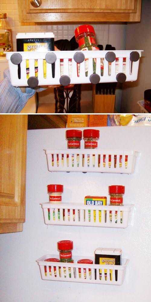 28. К холодильнику можно прикрепить различные корзинки и баночки с магнитами.