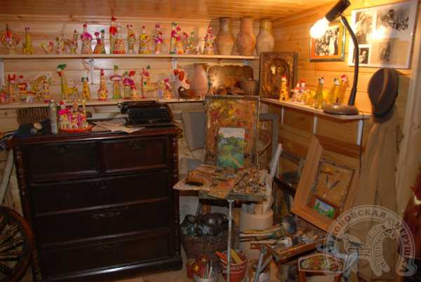 Автор статей по народному искусству На протяжении’ многих лет организовывал персональные художественные выставки в поселке и проводит встречи с учащимися школ поселка и района как художник – живописец, игрушечник и поэт. В 2012 году в доме художника была открыта мастерская-музей. На фото выше — кадры из музея-мастерской.