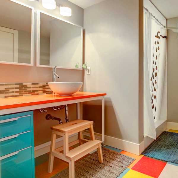 - Детская. Конечно, для очень маленьких детей такие предметы нежелательны, но когда малышу стукнуло 5-6 лет, он вполне понимает, что такое высоко и низко, потому сможет самостоятельно, без помощи мамы, достать определенные предметы, вещи.