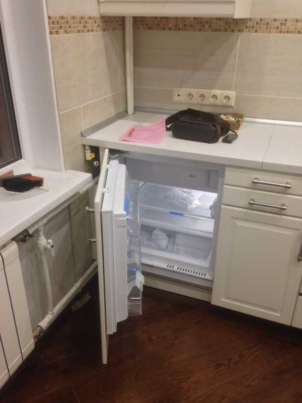 После этого монтируют бытовую технику в закрепленные каркасы, при этом, если соединение с коммуникациями оказывается затруднительным, лобзиком корректируют ниши. Завершив подключения к сетям, заполняют шкафы полками, ящиками и прочей утварью, вешают дверцы и прикрепляют ручки.