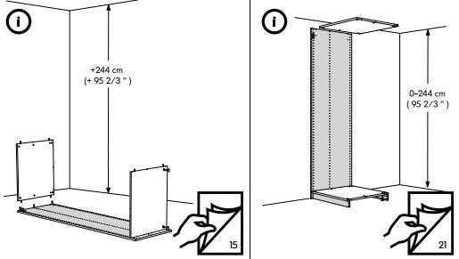Если высота составляет 244 и более сантиметров, шкаф можно собирать в горизонтальном положении.