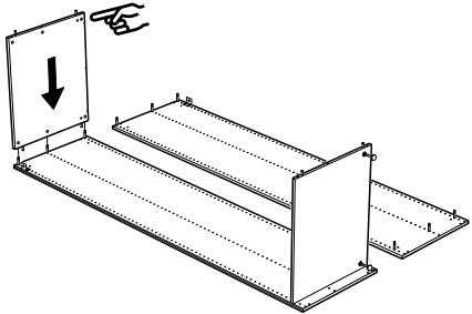 С помощью напарника придерживая в вертикальном положении боковину шкафа установите цокольные элементы