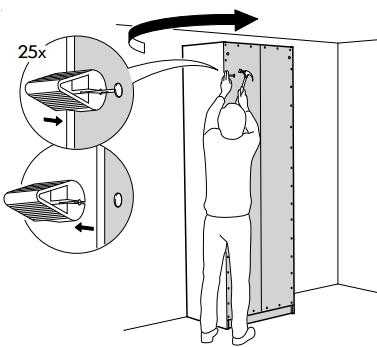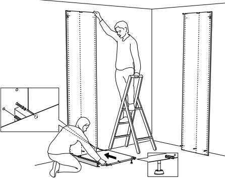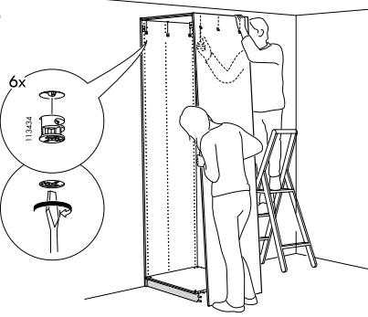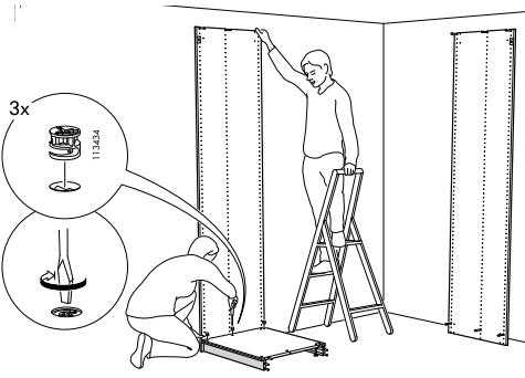 Сборка Пакс IKEA на первых этапах должна состоять в том, чтобы каркас мог надежно выдержать вес человека, который производит сборку шкафа (специалиста «СБ-Сервис»). Это делается, чтобы в дальнейшем не возникала нужда удерживать каркасную конструкцию монтажнику.