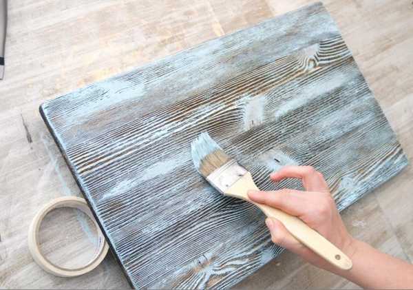 Если понадобится выполнить состаривание, понадобится жесткий флейц из щетины, однако, если его нет, то подойдет и простая зубная щетка, или металлическая губка для посуды. Все эти приспособления помогут частично снять слой краски, не испортив поверхность доски, и получить ярко выраженную фактуру.