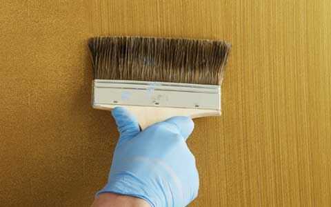 Краску используем нескольких оттенков, близких по тону и цвету, не до конца перемешанную между собой. Сразу же начинаем наносить краску валиком вдоль, чтобы края валика образовывали полосы-борозды.
