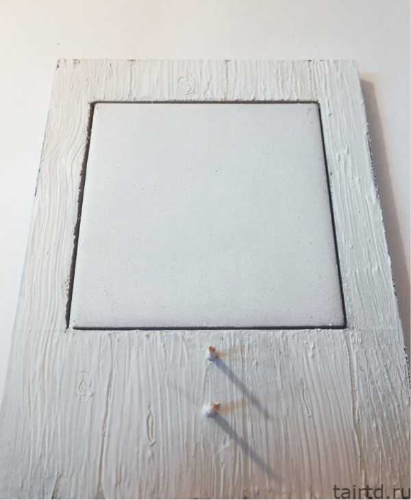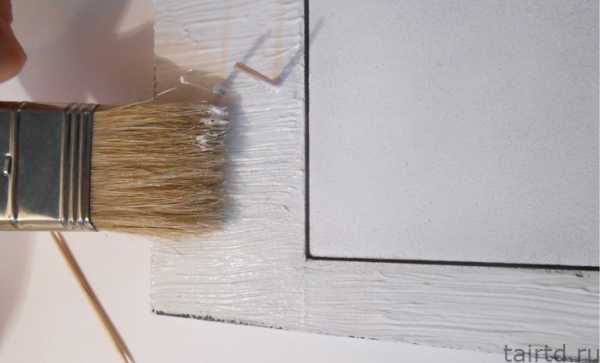 Первым этапом заготовку надо ошкурить наждачной бумагой и прогрунтовать. Просушить и снова ошкурить. Затем следует покрыть доску одним слоем акриловой краски белого цвета. Затем ошкурить и загрунтовать клеем в 2 слоя.