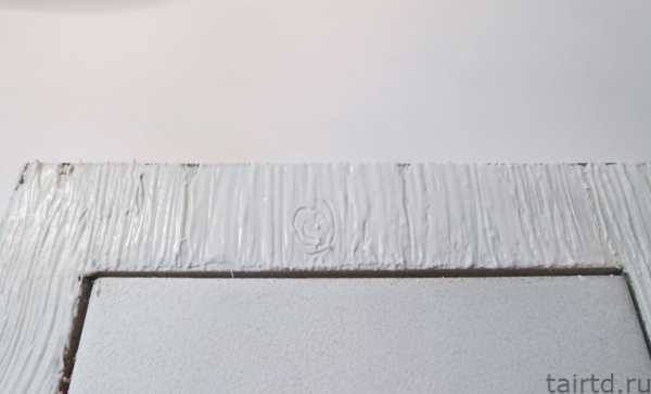Дальше уже берется настоящий трафарет для покрытия шпатлёвкой в том месте, где расположена «резьба». Это база. Ее надо просушить, и повторно нанести шпатлевку, используя трафарет. Затем надо опять воспользоваться зубочисткой.