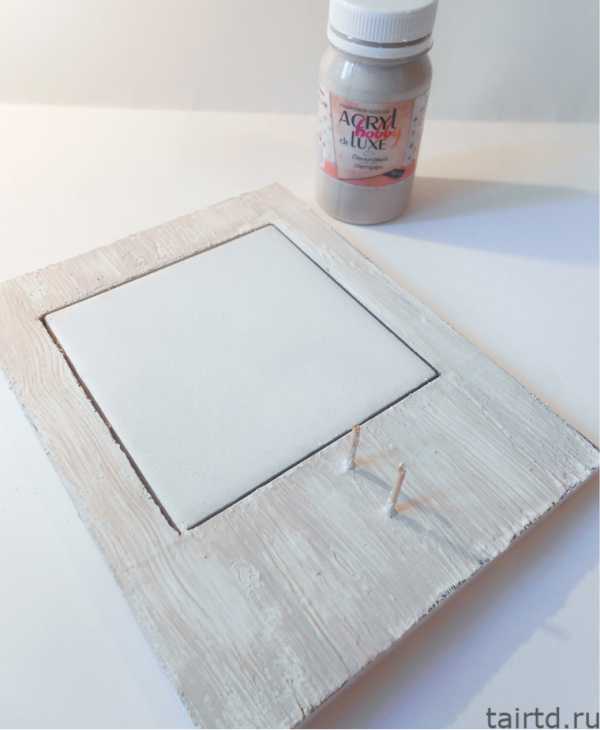После этого, изделие надо прокрасить краской цвета слоновой кости, и покрыть лаком. Далее немного развести водой краску коричневого цвета, и закрасить ей всю «деревянную» зону. Краска должна стекать по выпуклостям в бороздки, тем самым подчёркивая их.