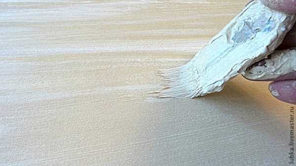 Берём «Акрил-Хобби Де Люкс» Слоновая кость. Набираем краску на кисть из щетины, как следуем отбиваем, вытираем излишки краски о бумагу, чтобы кисть была практически сухая. Лёгкими касательными движениями проходимся по поверхности, тем самым выделяя выступающие детали.