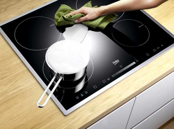 Убежавшая во время кипения пища не может оставить на гладкой тёплой поверхности панели заметных следов. Их просто нужно убрать с помощью губки, а потом вытереть так же, как поверхность стола.