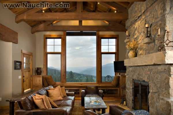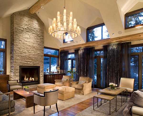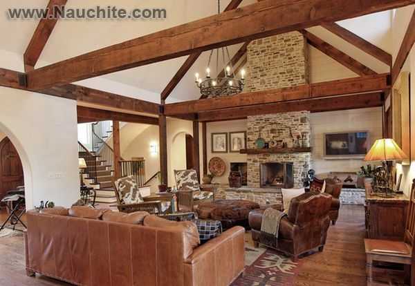 Если вам не нравится деревенский дух в оформлении интерьеров, Вы можете остановиться лишь на использовании массивных потолочных деревянных балок. Они добавят шарма любому интерьеру, создадут атмосферу тепла и уюта в сочетании с любым стилем оформления интерьера. Что касается камня, то его рекомендуется использовать для облицовки камина. Такой камин обязательно будет притягивать к себе внимание всех ваших гостей, приглашая их разместиться рядом для теплой дружеской беседы.