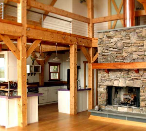 Массивные деревянные балки могут выглядеть очень элегантно, особенно в интерьере помещений с высокими потолками