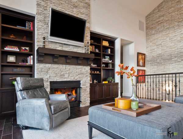 Каменный камин станет главным акцентом в интерьере любой комнаты