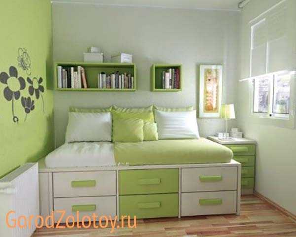 Полноразмерная кровать, шкаф для одежды занимает много места в маленькой комнате для девушек и сделает дизайн интерьера непривлекательным. Компактные решения для хранения вещей, небольшие тумбочки и кровати с выдвижными ящиками идеально подходят для малогабаритных помещений, особенно в «хрущевке».