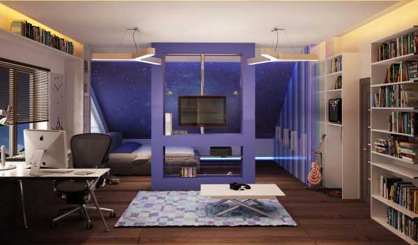 Цветовая гамма должна быть сдержанной, а при наличии ярких оттенков обязательно должны присутствовать те, что их уравновесят. Если вы хотели подарить ребенку современный телевизор, компьютер или телескоп, то такое место идеально подойдет для их размещения.