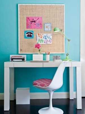 Уделите внимание зоне для учебы, поскольку этим ей придется заниматься еще много лет. Нужно достаточно много ящиков и полочек, хорошее эргономичное кресло и отличное освещение.