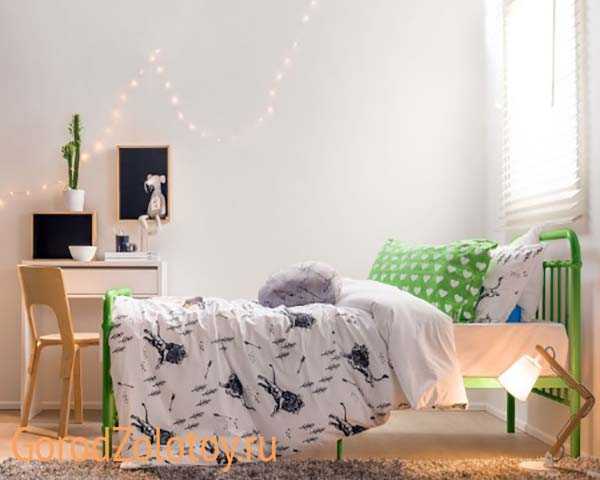 В целом, декор комнаты для девочки-подростка будет напрямую зависеть от увлечений хозяйки, а связанные с ними предметы встанут на место старых игрушек. Но ваш ребенок точно придет в восторг от гирлянды на стене, которая впишется в любую стилистику. Не лишними окажутся ворсистый ковер на полу и несколько семейных фотографий на столе.
